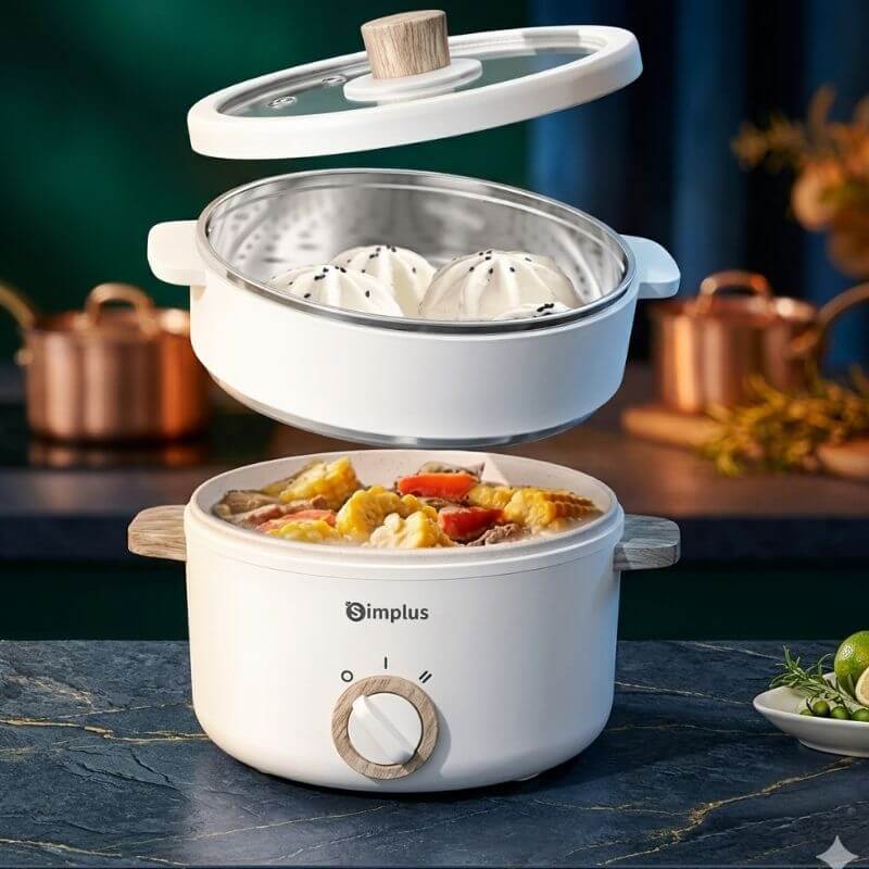 💡 Nếu bạn sống một hai người hoặc ở phòng trọ, nồi lẩu mini kết hợp hấp là lựa chọn rất tiện – vừa nấu nhanh vừa tiết kiệm không gian.